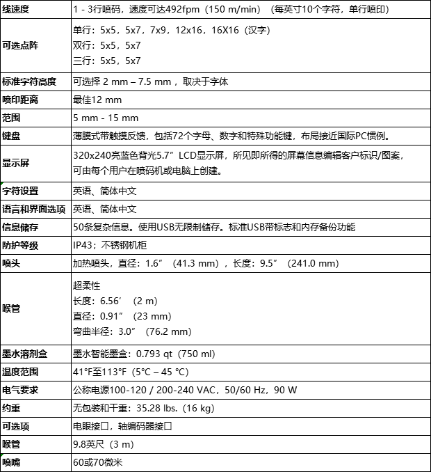 二、偉迪捷Willett 630噴碼機(jī)技術(shù)參數(shù)